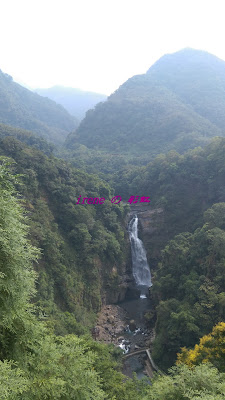 跟著車行蜿蜒的山路,赫然發現遠處山巒疊疊間,有一條細長涓涓的瀑布;;